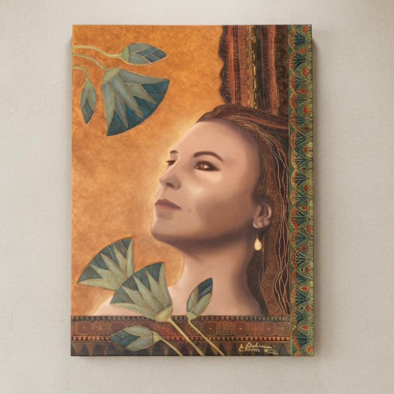 Elena Soliman is an artist, originally from Russia, Siberia. She began her artistic studies at an early age. Interest in creativity and art was supported by parents from childhood. Due to the specifics of the work of her parents, she had to travel a lot, this was reflected in the future on her creations. At the age of 22 she moved to Egypt where she has been living for more than 20 years with her family. Since 2015,she is the founder and head of the Sharm Art Studio in the city of Sharm El Sheikh. Egyptian history, culture, nature, art have become her sources of inspiration. Elena’s main goal is to reveal all the beauty of Egyptian life, history, philosophy, ideal patterns and symbols in her paintings. “I extremely love to draw! In my paintings I try to show the Egypt that I love and admire!”.