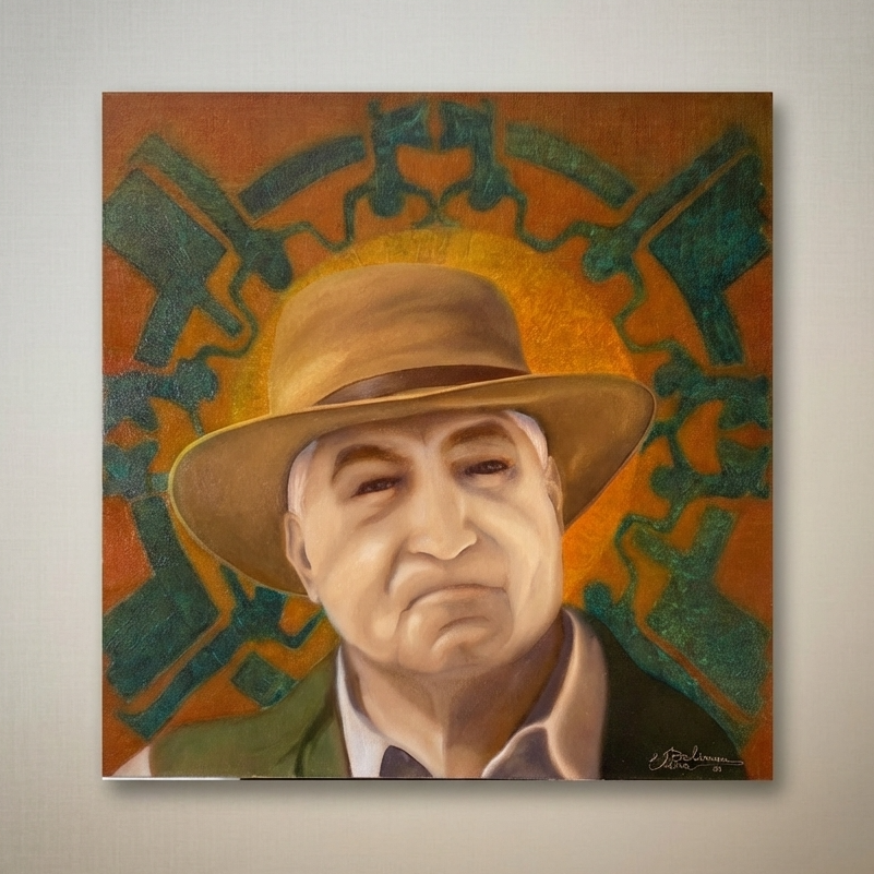 100 x70 cm, acrylic on canvas, hieroglyphs sign on the background meaning: “If you want to be a perfect person, make sure that your son is pleasing to God”